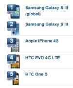 My rankings for this week have remained pretty much the same. Apple's iPhone 4S has taken the top spot on my list thanks to its camera, which is still one of the best shooters available on a smartphone, as well as its good battery life and quality app selection. Not far behind is the HTC One X, whose design I'm a big fan of. (Especially when it comes to the white model.) The One X earns points for having AT&T 4G LTE connectivity and a pretty good camera of its own, as well a very nice 720p display. Next on my list is the U.S. flavor of Samsung's Galaxy S III, which features HSPA+ connectivity on T-Mobile and LTE support for AT&T, Sprint, U.S. Cellular and Verizon. The Galaxy S III also has a 720p display and several other high-end specs, but I'm when it comes to picking an Android skin, I prefer HTC's Sense to Samsung's TouchWiz. Sprint's HTC EVO 4G LTE is next on my list and, like its One X brother, it features a great display and design. It also features a red kickstand, which is something that should please owners of the original EVO 4G upgrading to the EVO 4G LTE. Unfortunately, Sprint's LTE network isn't live as of this writing, so owners will only be able to use Sprint's 3G network for now. The HTC One S on T-Mobile rounds out my top five thanks to its attractive (and thin) body and its support for T-Mobile's 42Mbps HSPA+ network. The One S features a display that's slightly smaller than the other Android devices on my list (One S is 4.3 inches compared to 4.7 on the One X/EVO 4G LTE and 4.8 on the Galaxy S III), but that could be good news for folks that prefer a screen in the 4 to 4.3-inch range.